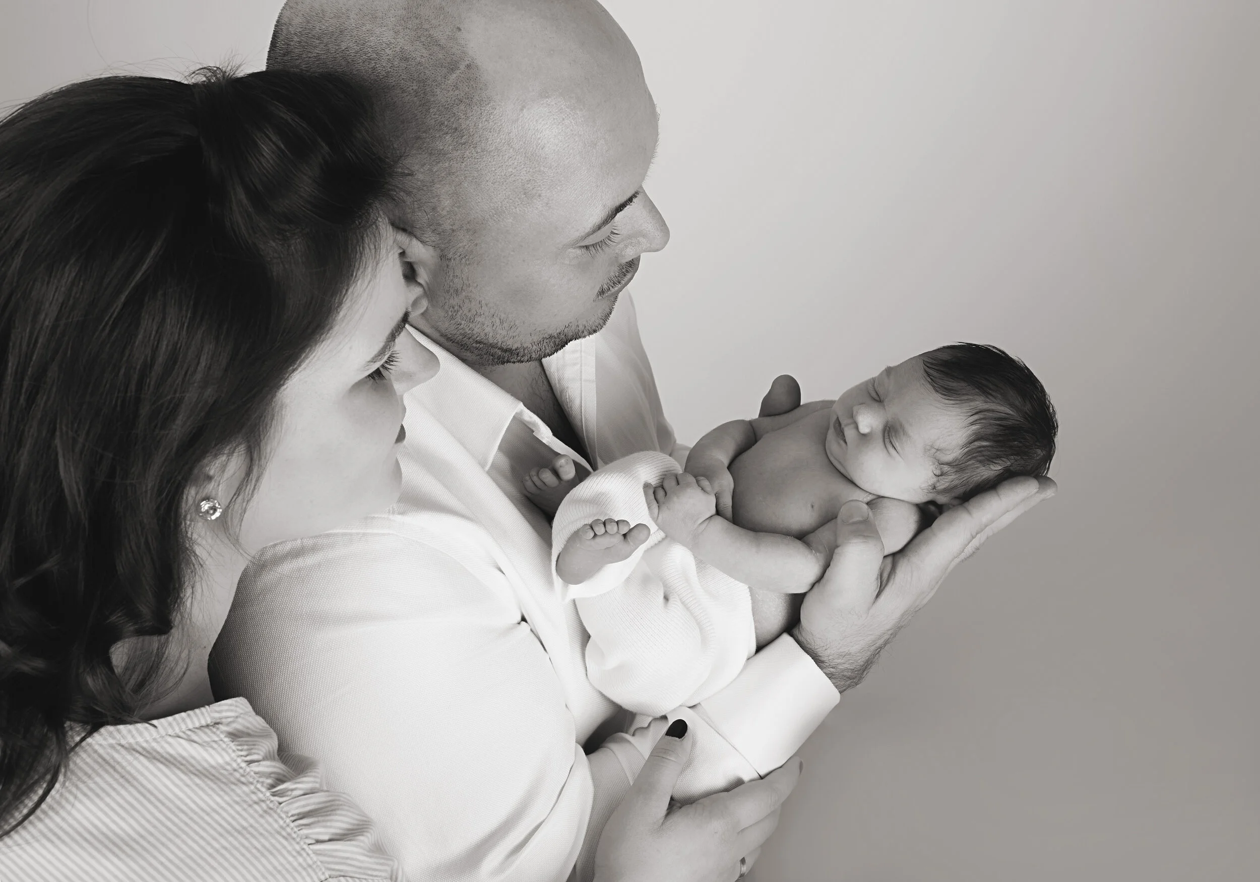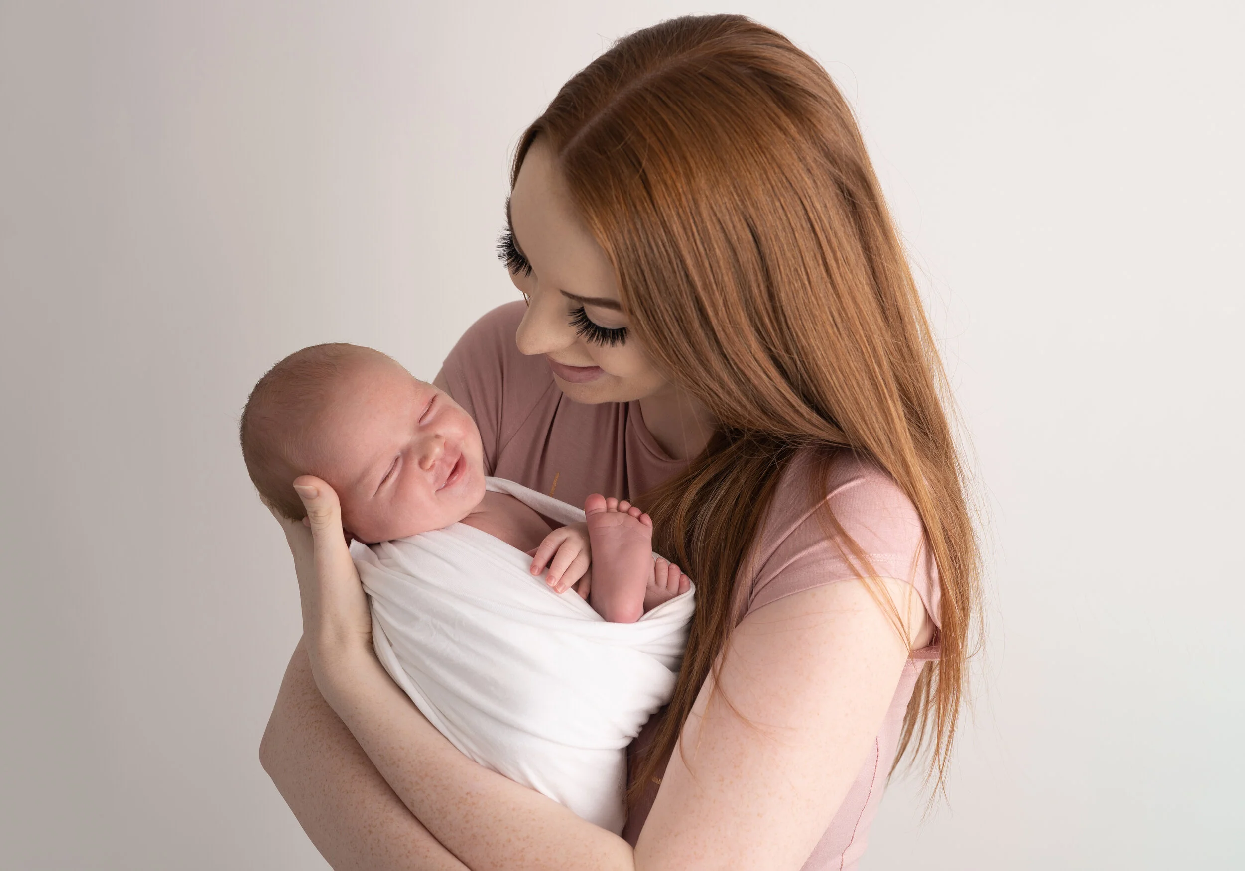 I recommend clothing in neutral colours with no big logos or patterns and something that your baby will be comfortable in for the duration of the photoshoot. I have a vast array of props and items therefore you don’t need to bring anything, other than your gorgeous baby, unless you have a particular item you would like to include. I always ensure the studio is running warm to keep your baby and happy and comfortable. It can sometimes feel a little hot for us adults so make sure you dress accordingly.